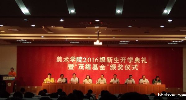 9月26日下午,美术学院在第二学术报告厅隆重举行2016级新生开学典礼暨“茂绪基金”颁奖仪式。学校党委学生工作部(处)孙喜武副部(处)长,美术学院领导夏卫东、刘雷、刘军、陶国平、韩波,学院专业负责人李水泳、鲍怀敏出席开学典礼。美术学院各系专业老师、辅导员、“茂绪基金”获奖学生、全体2016级新生和在校生骨干学生代表参加了典礼,特别邀请山东茂绪保温装饰工程有限公司总经理李金峰出席开学典礼。典礼由美术学院党委副书记、副院长刘军主持。