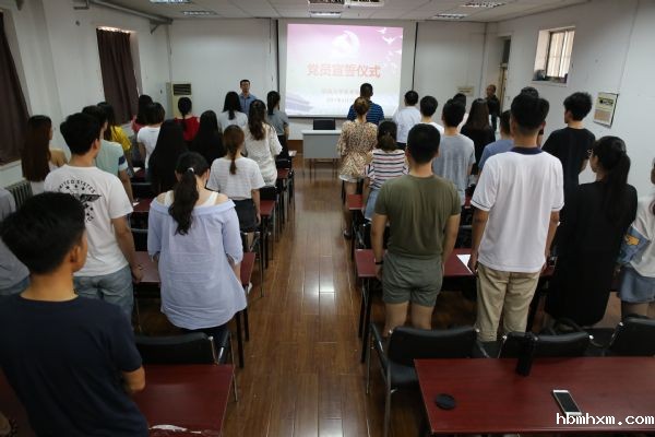 为隆重纪念中国共产党建党96周年,推进“两学一做”学习教育常态化制度化,进一步增强党组织的凝聚力和战斗力,引导广大党员坚定理想信念,增强党性意识,为实现“两个一百年”奋斗目标和中华民族伟大复兴的中国梦而努力奋斗,6月29日下午4点半在四教楼六楼大会议美术学院举行纪念中国共产党建党96周年暨新党员入党宣誓仪式。出席仪式的有美术学院党委书记夏卫东、党委副书记刘军、信苏珊老师、李健慧老师,以及美术学院学生支部全体党员。仪式由辅导员田涛老师主持。