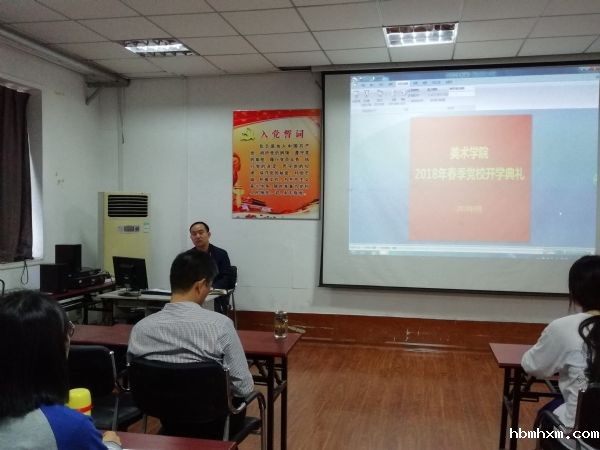 4月26日,美术学院2018春季党校开课仪式于美术学院党员活动室拉开帷幕。学院党委书记夏卫东、副书记刘军、学工人员及全体入党积极分子参与了开班仪式。仪式有刘军书记主持。