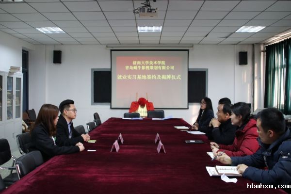 3月9日,美术学院与青岛蜗牛影视策划公司就业实习基地挂牌仪式成功举办。学院党委副书记刘军及全体辅导员,青岛蜗牛影视策划公司经理石闯奇出席挂牌仪式。仪式由学院团委书记信苏珊主持。