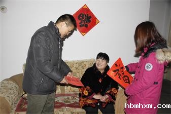 20日上午,家访小组带着学院准备的面粉、油等生活必需品、慰问金及学院陈健老师亲手为学生书写的“福”字来到徐同学的家中。徐同学是美术学院的一名大三学生,几年前的一场车祸导致父亲去世,母亲头部重伤留下后遗症,不能外出工作,母亲治疗花掉了家中的全部积蓄,全家人的生活费用、徐同学的学费、母亲的治疗费都靠姐姐微薄的工资支持,生活十分拮据。学院副书记盖丽那老师首先向徐同学家人详细介绍了我校开展寒假辅导员家访的目的、意义和活动安排,并介绍了学生在校表现情况,徐同学认真学习,荣获了学校的“同心光彩”助学金,获得了国家助学金。夏卫东书记语重心长的说:“眼前的困难都不是困难,学校、学院会帮助你完成学业,希望你努力学习,将来报答母亲的养育之恩。”并以“宝剑锋从磨砺出,梅花香自苦寒来”来激励其奋勇向前,把暂时的困难和逆境变成成功路上的垫脚石。盖丽那书记向家长介绍了学校和学院对贫困学生的帮扶政策,表示学院一定会尽力帮扶家庭经济困难的学生顺利完成大学学业,请家长放心,同时也鼓励小徐同学努力学习。徐同学也表示,在学校一定会努力学习,化逆境为动力,不辜负老师及学校的殷切期望。